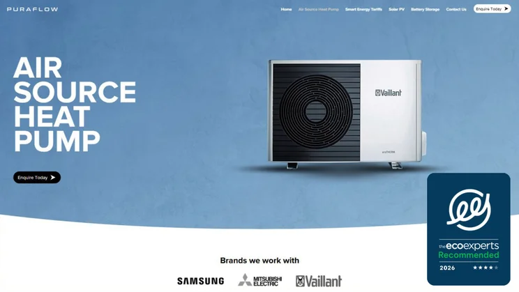 Puraflow’s website is polished and professional, with sections for solar PV and battery storage as well as for ASHPs. The company also provides home insulation services. There’s a good selection of heat pumps on offer, with Samsung, Mitsubishi and Vaillant models all installed by the fully-accredited team. You can apply for financing through the site, too.