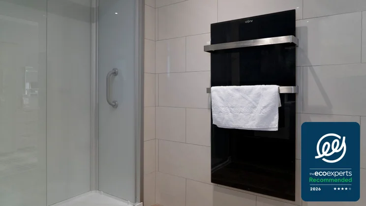 Elegance by name, elegant by nature. Cürv’s Elegance range includes three panel types – a regular infrared panel, a mirrored panel, and an infrared towel rail (pictured above) – which is fewer than many competitors. But what this collection lacks in size it makes up for in quality.